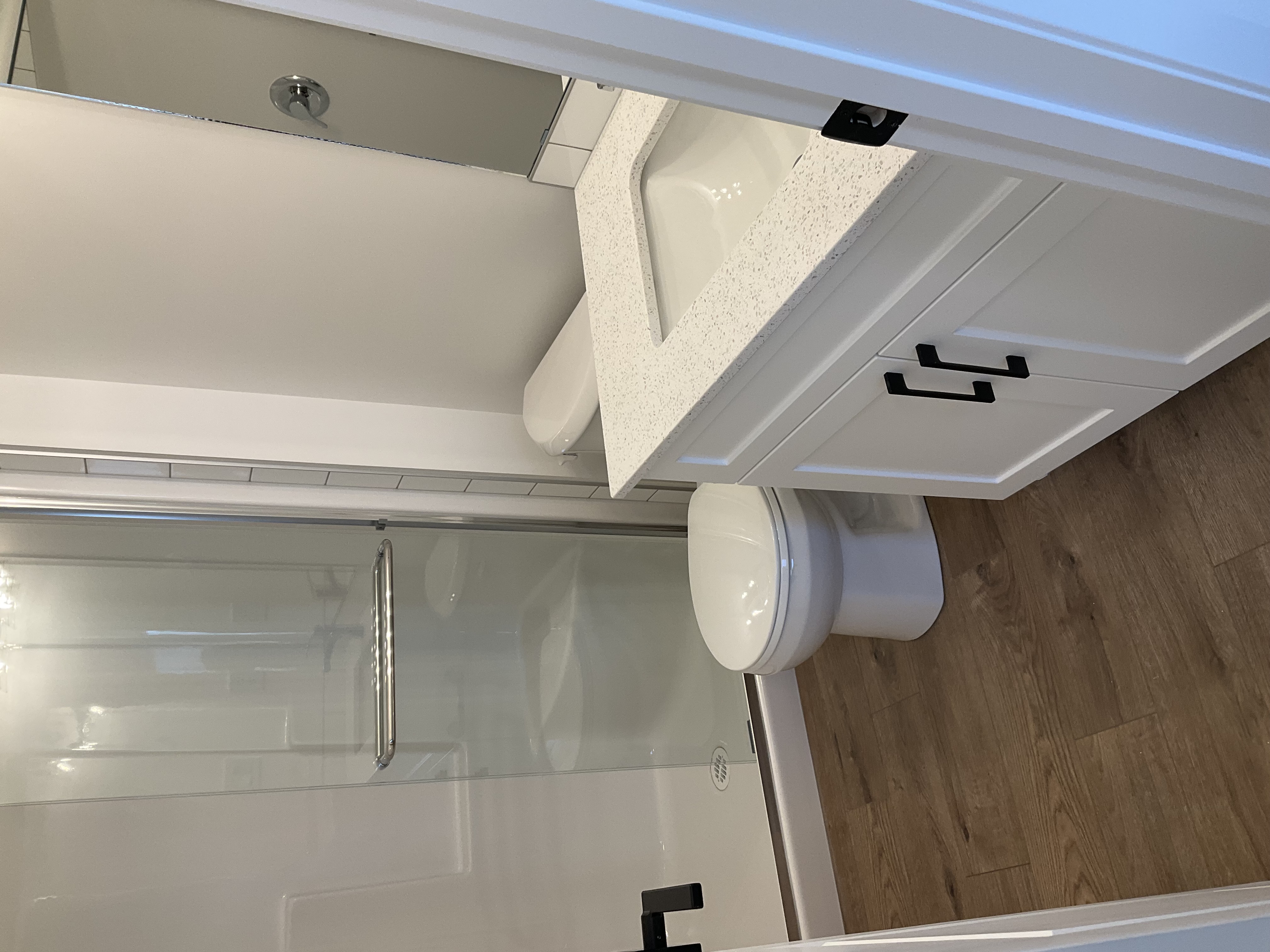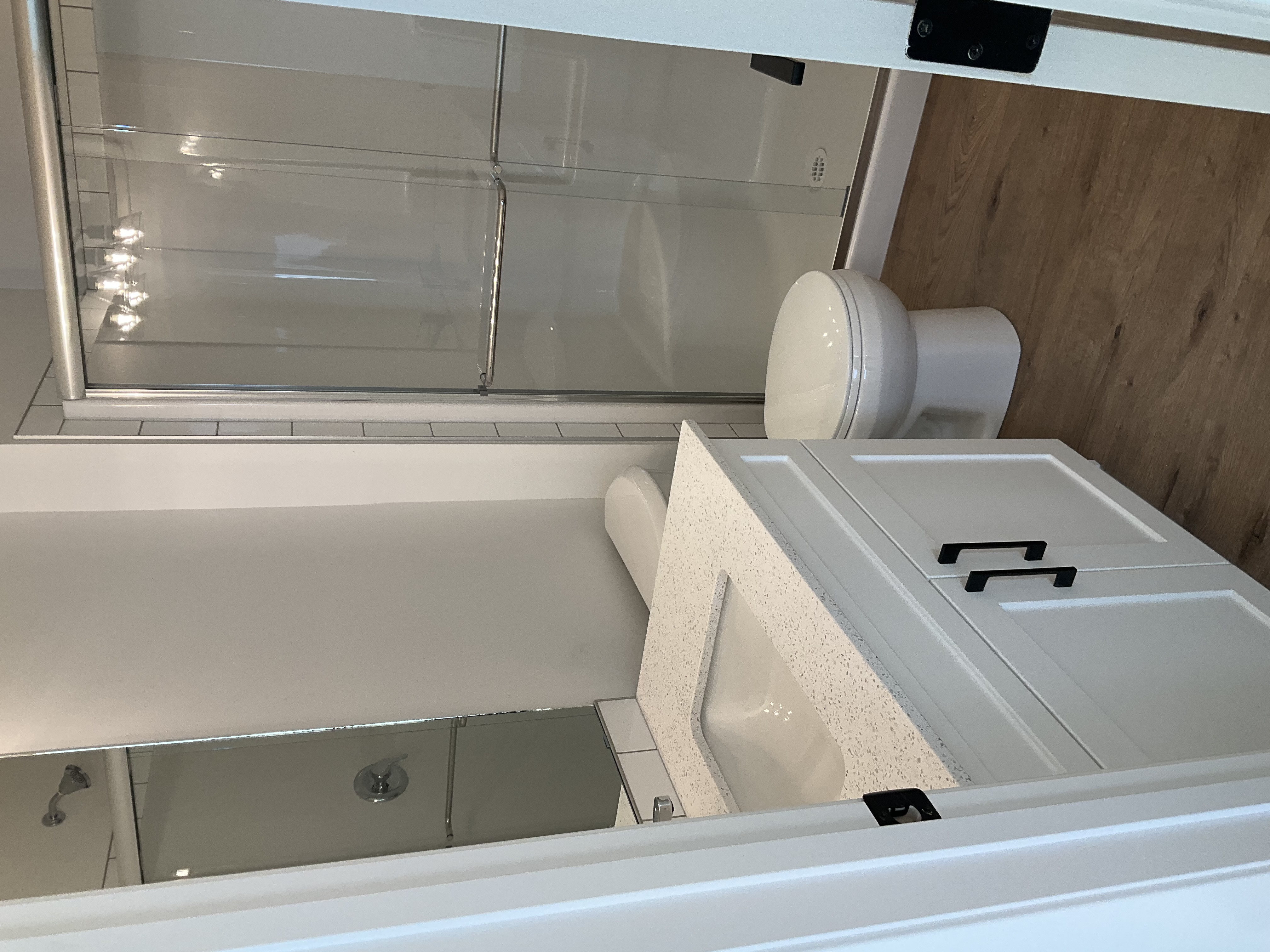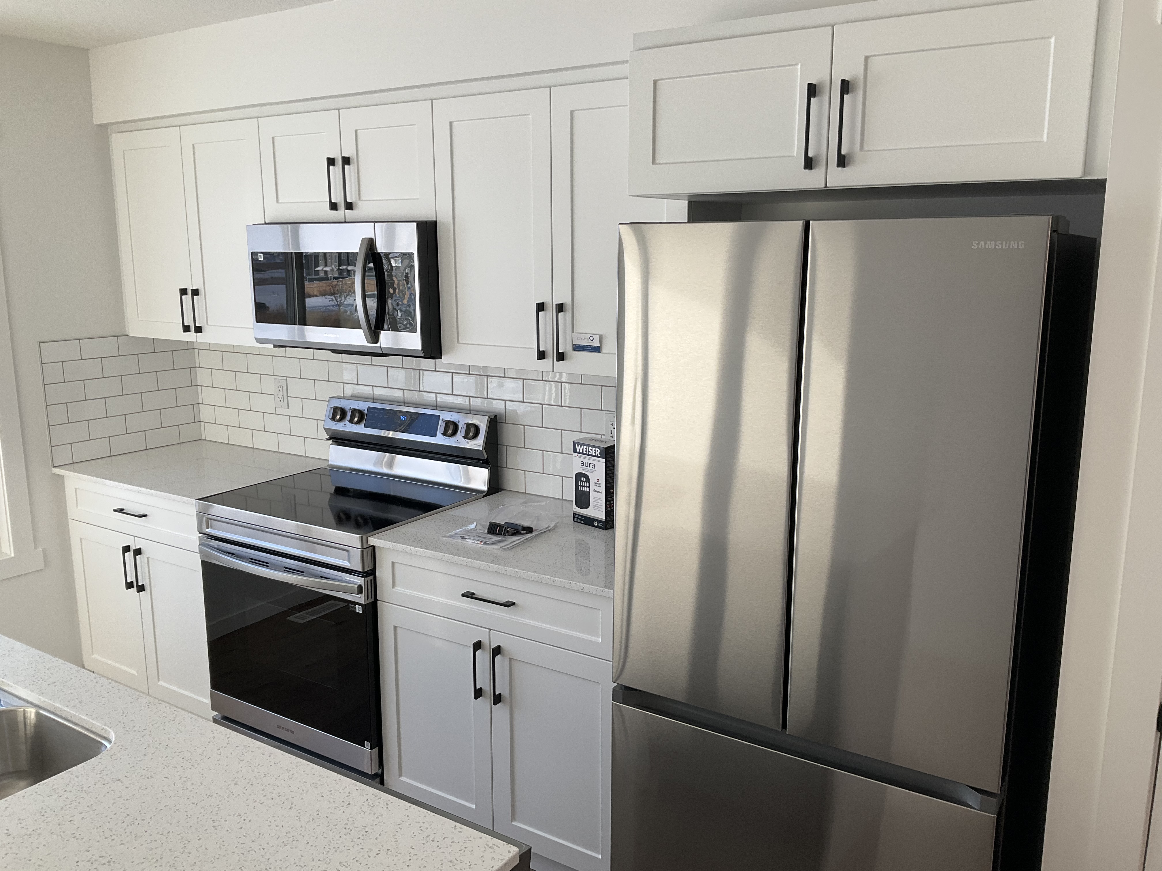 - Quartz countertops with a clean contemporary design
